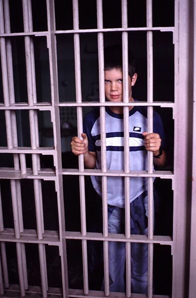 "Jail Boy" Will in a cell on Alcatraz Island. 1987